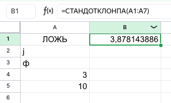 Возвращает стандартное отклонение по генеральной совокупности, включая числа, текст и логические значения.