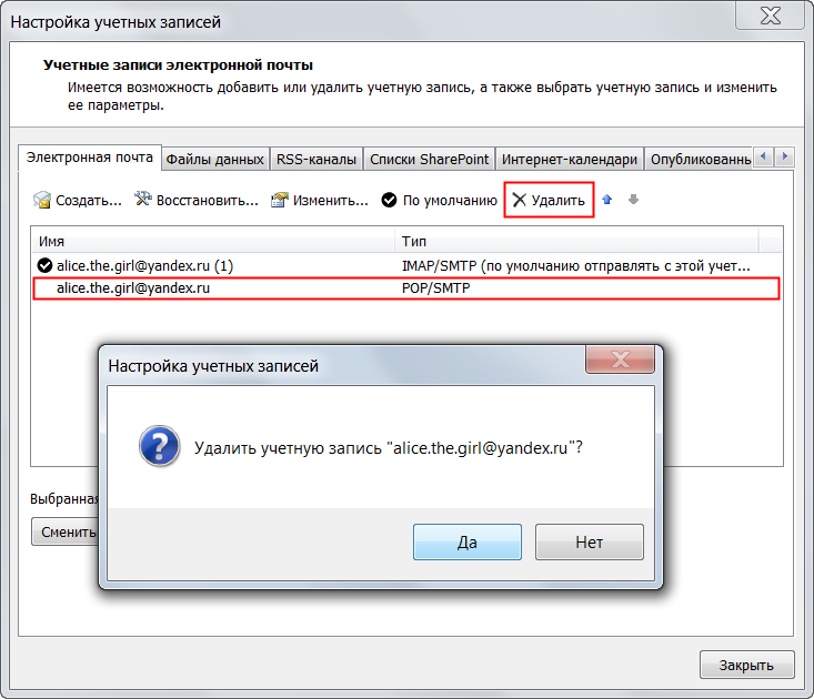 Если эту учетную запись не удалить, то письма могут автоматически помечаться прочитанными — уведомлений о новых письмах не будет.