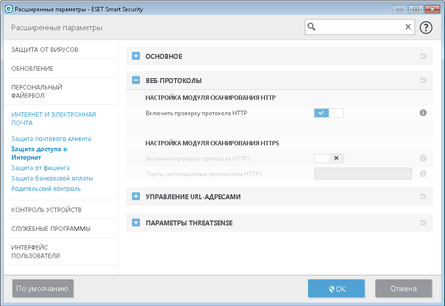 Отключение проверки HTTPS-соединения в ESET NOD32 Smart Security