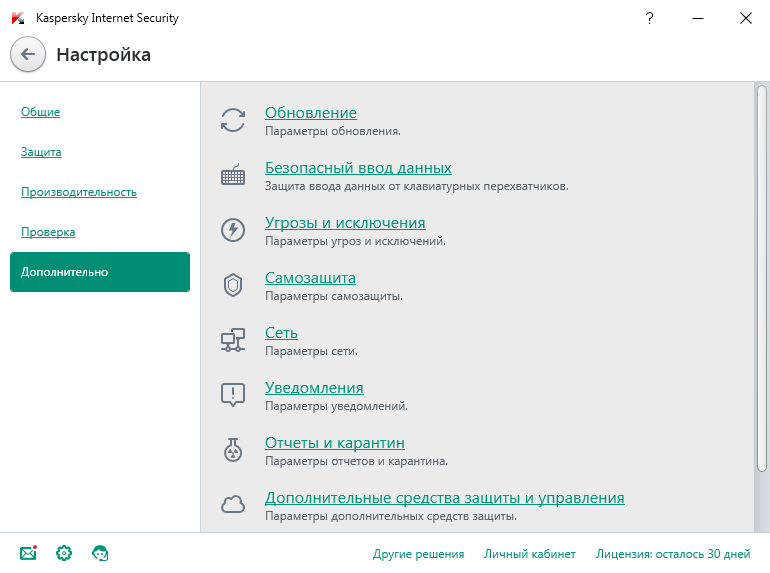 1. Откройте окно антивируса, перейдите на вкладку Настройка и нажмите ссылку Дополнительные настройки.