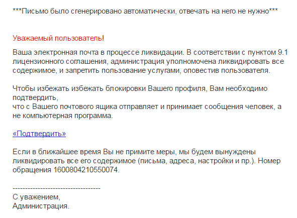 В письмах говорится о том, что по какой-то важной причине вам нужно перейти по ссылке, указанной в письме, и ввести там конфиденциальные данные (пароли от учетных записей, номер или PIN-код кредитной карты и т. д.). Ссылка в письме ведет на поддельный сайт. Как правило, такие сайты являются точной копией настоящих. Поэтому, если вас попросят ввести личные данные на таком сайте, вы можете сделать это не задумываясь. Мошенники получат нужную информацию и смогут использовать ее для рассылки спама, кражи аккаунта в социальной сети или денег с банковского счета.