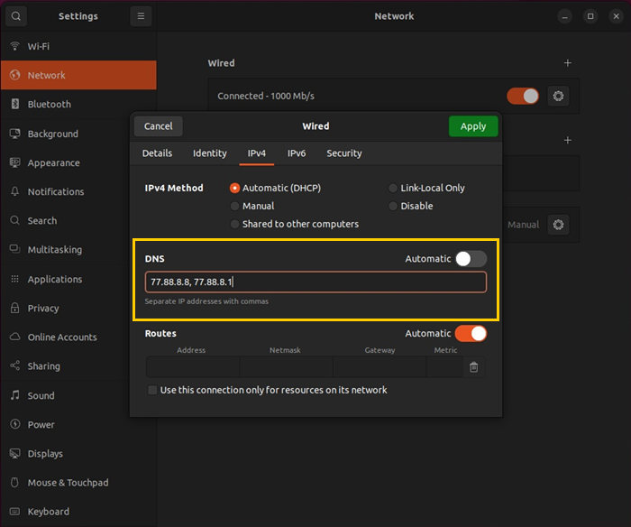 4. Go to the IPv4 tab, then, under IPv4 Method, select Automatic (DHCP).