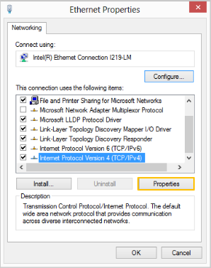 Select Internet Protocol version 4 (TCP/IPv4) → Properties.