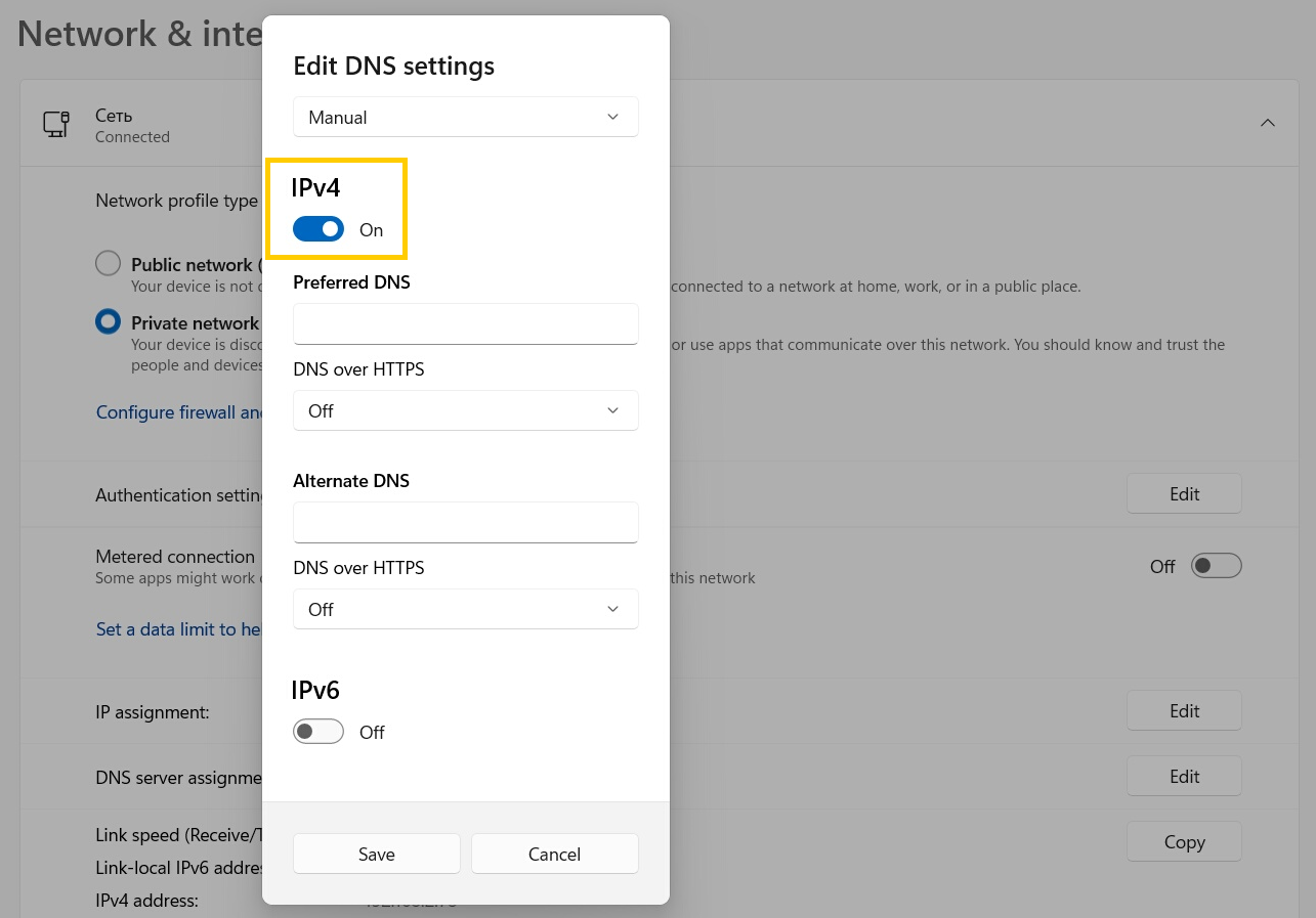 Enter IP addresses of selected DNS servers in the Preferred DNS and Alternate DNS fields.