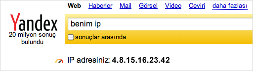 Ya.İnternetİnternetmetre hizmeti ile birlikte kullanıcıların IP adresini gösterebilen özel bir Sihirbaz da hizmete girmiştir. Kullanıcıdan [IP'mi öğren] veya [IP adresim] şeklinde sorgular gelince Sihirbaz hemen yanıt gösterir.